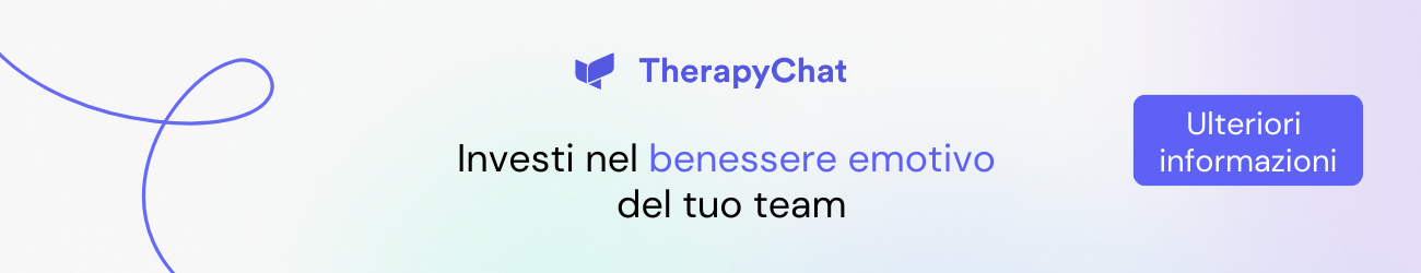 Noi di therapyside abbiamo creato therapyside for Business con cui vogliamo avvicinare il benessere psicologico ai professionisti attraverso diversi piani in cui combiniamo la tecnologia più avanzata con il miglior team umano. All’interno di questo piano si trovano diversi programmi di formazione interattivi in formato workshop su misura, creati per aiutare i team a migliorare la loro gestione emotiva. In questo modo potrai realizzare una prevenzione globale nell’ambito della salute mentale, offrendo ai tuoi team ottimi strumenti che avranno conseguenze positive su di loro e sull’azienda, mettendo al primo posto le necessità più importanti delle persone e dell’azienda. Infine, ti invitiamo a contattarci e a provare i benefici dei nostri servizi.